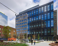 Exterior view of Chapter Building II, designed with flexible MEP systems and adaptable floorplates.
